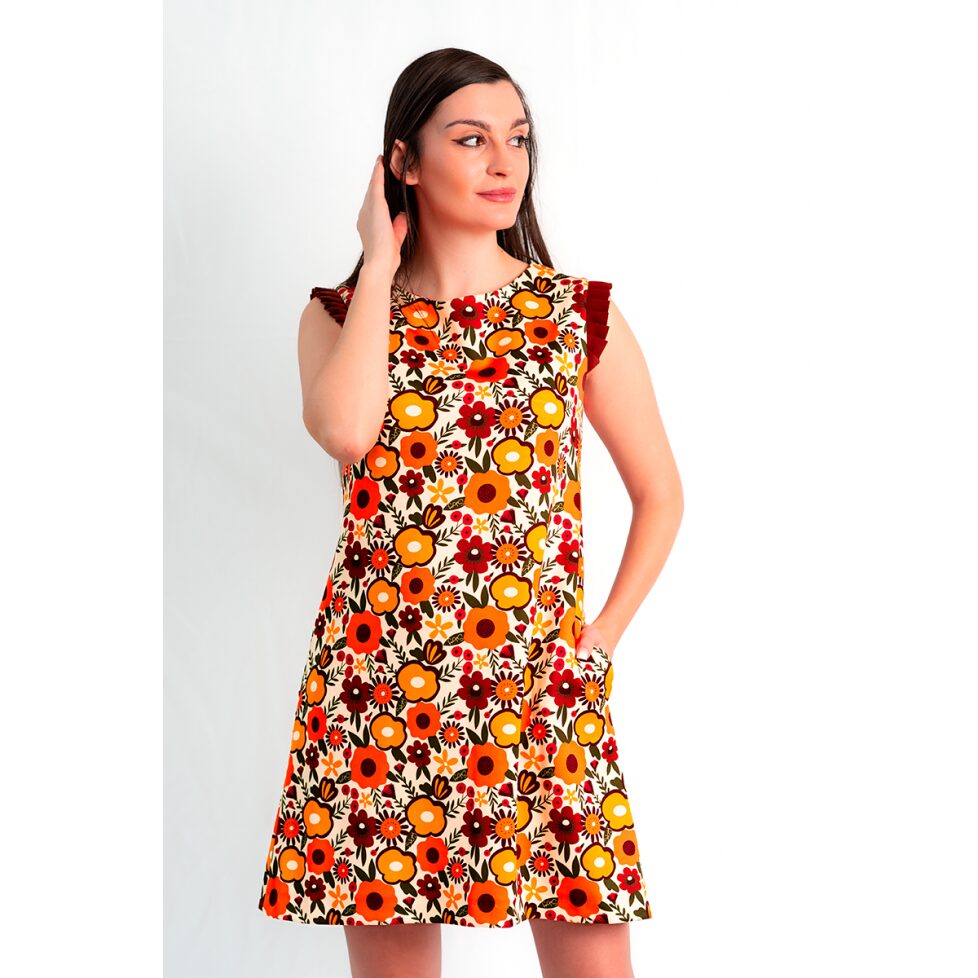 Vestido con estampado floral exclusivo de Sabay Clothing. Destacar de este favorecedor vestido su corte recto, escote en pico y tapetes en contraste.