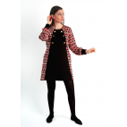 Vestido Camisero, completamente abotonado, tenemos que destacar de este vestido su estampado súper original en el cual aparecen representados muchos de nuestros diseños. El tejido es muy calentito de punto.